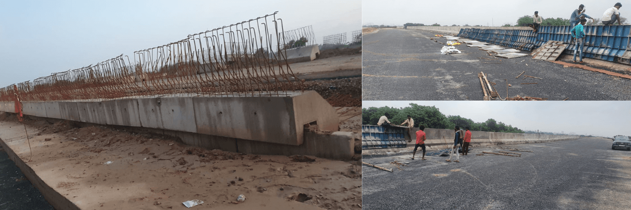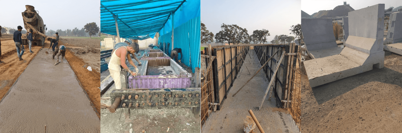 We prepared precast boundry wall planks and vertical post with the Hydraulic system. sizes of planks and post depend on drawing of clients. We currently used 375 boxes of hydraulic system of planks and 120 boxes for post which produces 1200 running metre boundry wall per day and we have commited to enhance our production capability 2500 running metre per day upto March 2024.We are pleased to tell all that we have 240 km (approx..) book order on which work in progress. We have also provide services related to Crash barrier,Retaining Wall as well as Drain work